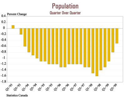 quarter-to-quarter population decline as the natural increase was just
