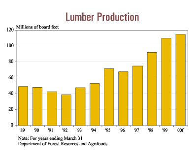 The volume of lumber production in 1998/1999 hit an all-time high of