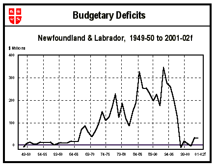 Oil revenues will remain modest until project capital costs are recouped. Overall, many revenue gains are offset by concurrent reductions in Equalization. So while the economy is producing some solid results, this does not necessarily translate into similar growth in government revenues. Real economic growth in 2001 is expected to be 2 percent, reflecting, in part, completion of Terra Nova construction and oil production commencing late in the year. A major factor in the economic outlook, but still uncertain, is the extent the province may be impacted by an economic slowdown in the United States, our major export market. The effect a U.S. slowdown could have on the Canadian economy generally is also a factor. While there are uncertainties in the national and international economies, we are expecting growth in our economy in 2001 to be broadly based, reflecting the underlying strength of many sectors. With employment expected to grow, the unemployment rate could further decline. Our population should stabilize as out-migration continues to slow. Our Fiscal Framework With the strong provincial and national economies in 2000, we will slightly better our deficit target for the year just ending. At $32.7 million, the deficit for 2000-01 is $2 million lower than forecast last year. We have now recorded the best fiscal performance for any consecutive five year period since the early 1960s. Mr. Speaker, each year we have not only met, but improved upon, our deficit targets.