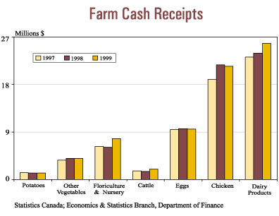 Farm cash receipts in the Province in 1999 reached $78 million, an