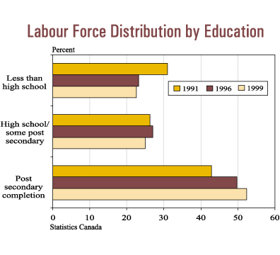 completed post secondary studies, an increase from 43.1% in 1991.