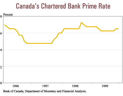 consumer spending. Since mid-1999, the chartered bank prime rate has climbed