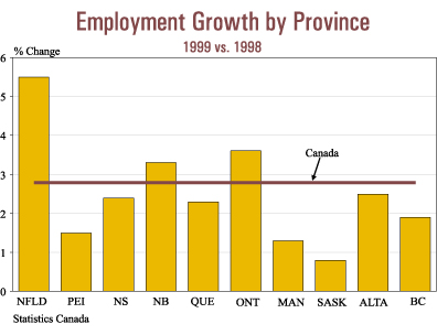 helped. Employment grew by 2.8% in 1999 enabling the unemployment rate to