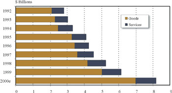 Exports accounted for over 60% of GDP growth last year, largely because of gains in oil. Offshore oil production totalled 52.8 million barrels in 2000, up 45% over 1999. Other
