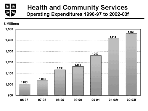 Stabilizing Health Board Budgets After very significant increases to the base budgets of institutional health boards over the past few years, government believes boards now have sufficient funding to deliver their service mandates. However, additional funding of $5 million is being provided for utilization increases and inflation. Further funding is also being provided for negotiated salary increases, group reclassifications and pay equity settlements. With these increases, boards are expected to balance their budgets in 2002-03. Over the past six years, on a cumulative basis, government has contributed an additional $427 million to the base budgets of boards. Government commends the institutional boards on the progress they have made to operate with balanced budgets. Projected deficits for 2001-02 have been reduced from around $18 million to as low as $3 million. Government will continue to work with all boards so they can achieve efficiencies, as well as service improvements. There will be new initiatives to encourage primary health care reform as part of the new Strategic Health Plan, for which $2.5 million is provided.