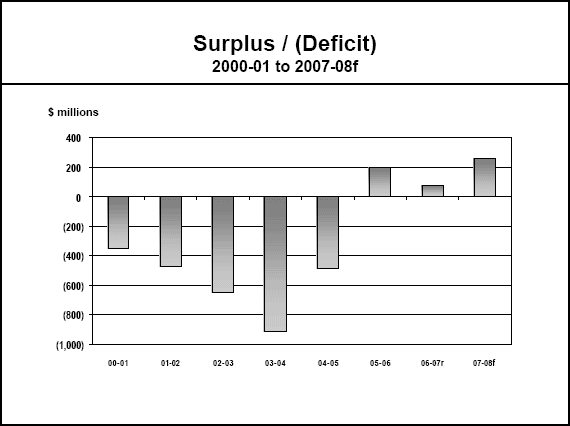 projected surplus of $6.2 million for 2006-07 was, at midyear, expected to become a deficit,