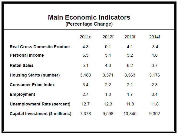 Real GDP is expected to increase by a modest 0.1% as the Terra Nova and White Rose production facilities are taken offline for maintenance. Nevertheless, most other economic indicators are expected to remain strong, reflecting higher levels of investment and overall strength in the economy.