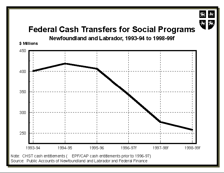 Our Province's prospects are good for 1998 and beyond. Yet, the financial situation remains difficult. We are forecasting declines in economic indicators in 1997, including a decline in real GDP of about 2.7 percent. Real personal income will fall by 2.9 percent, partly because of the reductions in TAGS payments.