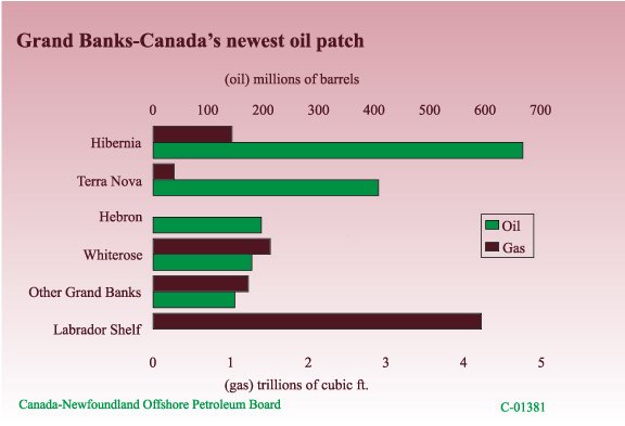 Diversifying the EconomyOil and GasHibernia Oil production reached almost 24 million barrels in 1998, the Hibernia field's first full year of operation. Production of 56,000 barrels per day from the first well set a new Canadian record. Combined capital and operating expenditures in 1998 approximated $350 million and employment averaged almost 960. Activities associated with the development and production of oil have strengthened the private sector and enabled the economy to diversify. Crude oil accounted for about 9% of the Province's exports last year. Terra Nova Development of the second largest known oil field on the Grand Banks is proceeding on schedule and on budget, with first oil expected by the end of 2000. Project investment in 1998 totalled about $670 million. Activities in the Province centered around project management and procurement, vessel design testing, preparation for subsea template and manifold fabrication, and commencement of topsides module fabrication at Bull Arm. Project employment in the Province rose from about 90 in January to almost 320 by year-end. Infrastructure The decision to proceed with Terra Nova, close on the heels of Hibernia, has accelerated the expansion of a well developed support service capability. This capability will facilitate, and make more economic, the development of local oil resources as well as position the industry for related opportunities abroad. The opening of a regional oil transshipment terminal in late 1998 was key in satisfying Hibernia's need for local transportation and storage facilities. Just two months after the official opening, it was announced that the terminal will undergo a $65 million expansion to accommodate product from Terra Nova. The provision of other value-added services, which will require further investment at the terminal, is currently under review. Exploration To date, 122 exploratory wells have been drilled resulting in 23 significant discoveries, including the newest significant discovery declaration on Amoco et al's West Bonne Bay well C-23 made last year. Seismic activity, a key component in drilling decisions, reached record levels in 1998. While declining oil prices have reduced industry cash flows and the capital budgets of most oil producers, exploration intentions for the Newfoundland offshore remain largely intact. A prime reason why the East Coast continues to attract investment is low finding cost per barrel of oil, which in the Jeanne d'Arc Basin, is about one-half of the cost in Western Canada. Three exploration rigs (one onshore and two offshore) are expected to be operating in the Province in 1999. PanCanadian is currently drilling an onshore-to-offshore well on the Port au Port Peninsula while a semi-submersible rig, the Glomar Grand Banks, is drilling the second well in its multi-well program. Glomar's first well, in the Hebron-Ben Nevis field, yielded encouraging results. A third rig, the Bill Shoemaker, is expected to arrive soon and commence drilling shortly thereafter.